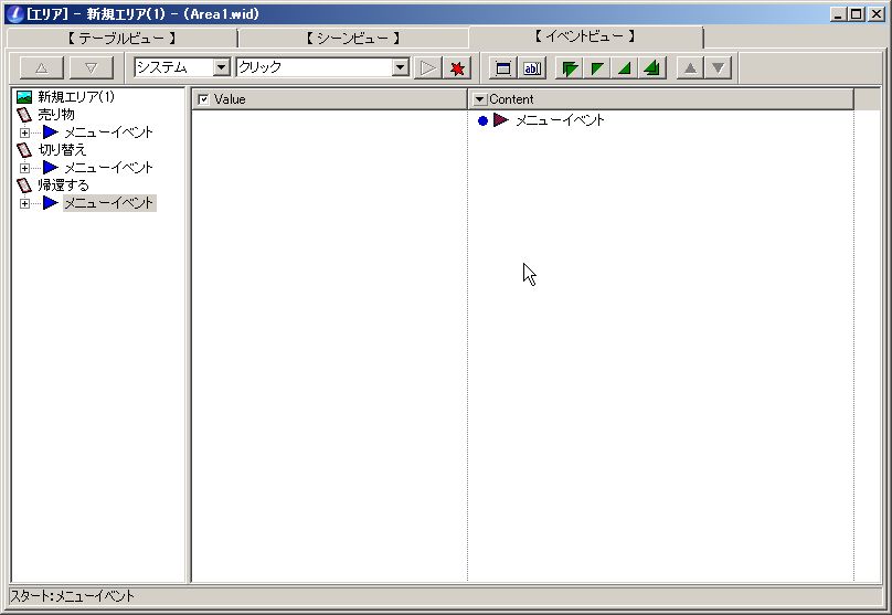 フラグ分岐コンテントの下に何かコンテントを入れた場合、Ver1.50以上のビルダーだと勝手に「TRUEだったとき」「FARSEだったとき」の順番にイベントを作ってくれます。便利ですね。後ほど手動で変更も出来ます。