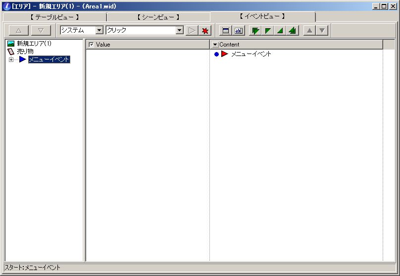 さっき作った新規エリアをダブルクリックすると、
