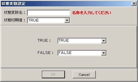 フラグの名前を決め、状態変数名の欄に入力します。さっきONとOFFの話をしましたが、「TRUE」がONでFALSEがOFFだと思ってください。