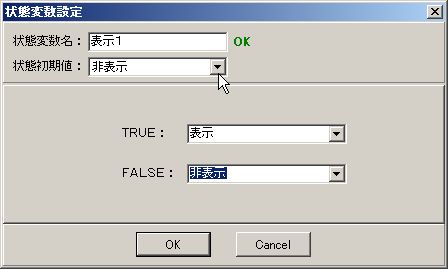 最後に「状態初期値」を設定します。これは、このフラグが設定されたエリアに入った瞬間のフラグの初期状態を設定しておくものです。最初は「TRUE」の値が代用されていますが、画面では「非表示」に変更されています。