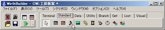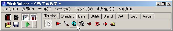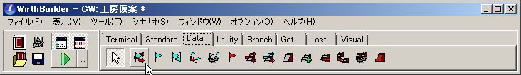 最初に、「データウィンドウ」の【状態変数】を選択、青い旗のマーク「フラグの作成」をクリックします。