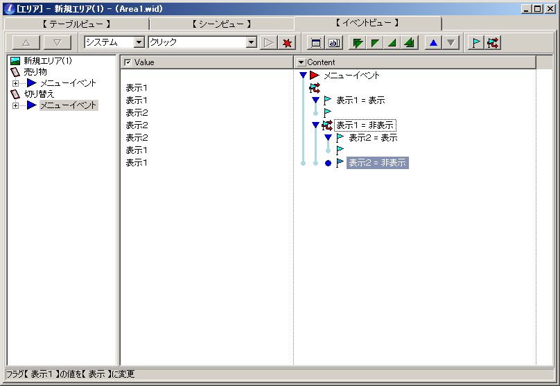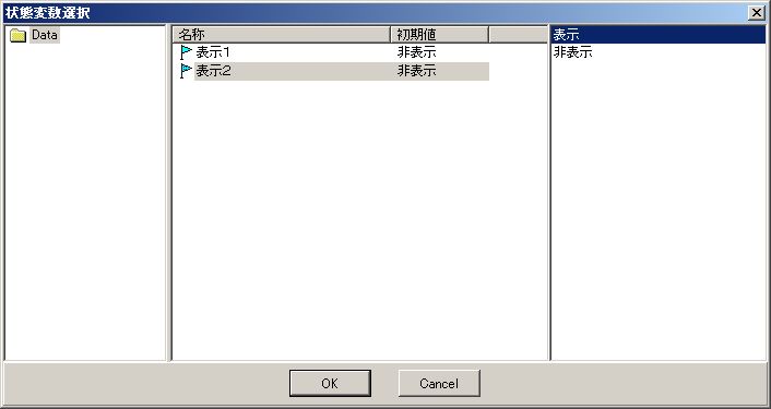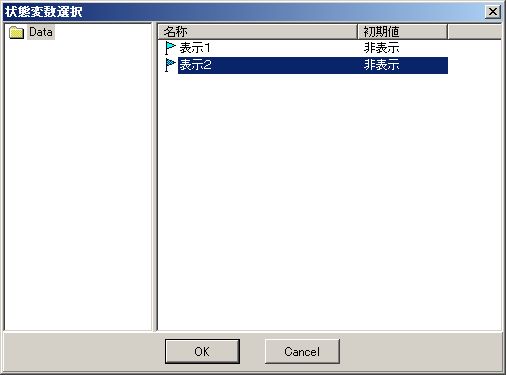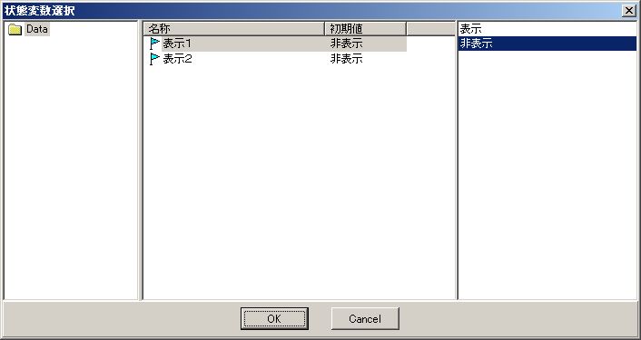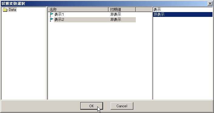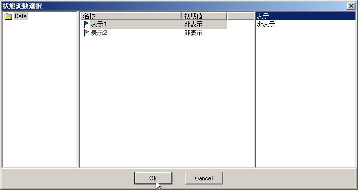 フラグの切り替えは、「Data」パレットからコンテントを設定して行きます。