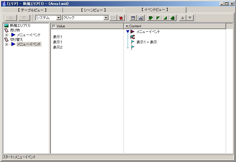 こんな感じでカードを作成したら、「イベントビュー」を開いてカードをクリックしたときのイベントを設定します。