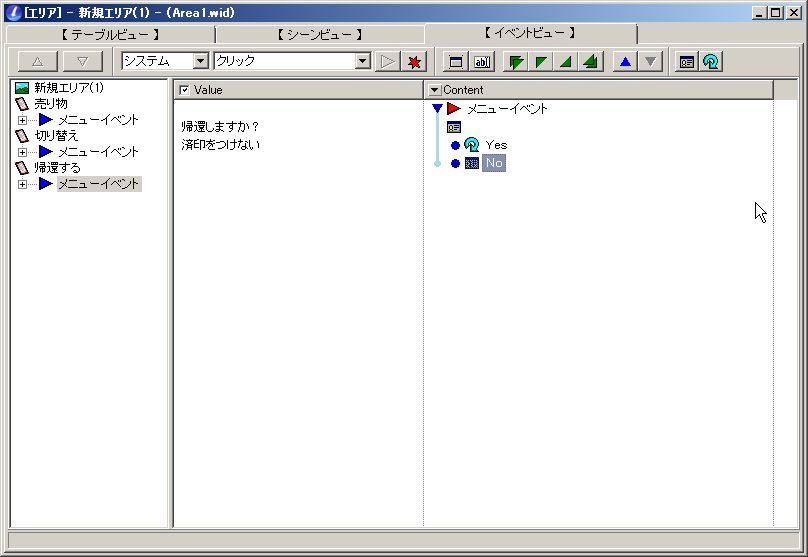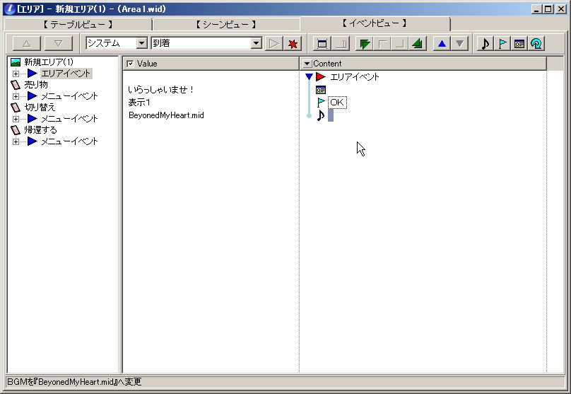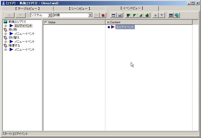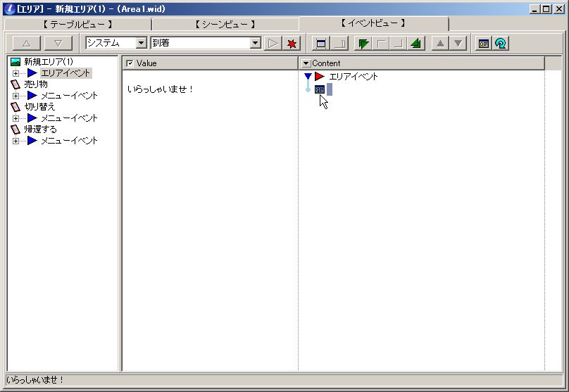 「エリアイベント」という、到着時のイベントを組むためのツリーが発生します。