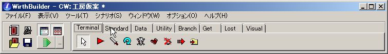 ビルダーの上の方のパレットは最初「Terminal」になっています。