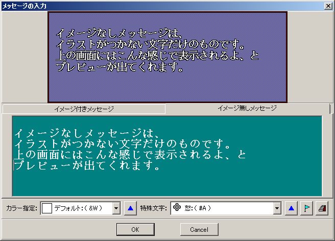 メッセージが完成しました。Ver1.50ビルダーのバージョンにも拠りますが、左側にプレビューが表示されるものもあります(この辺調べ忘れ。最新版だとこんな画面になるはず)。