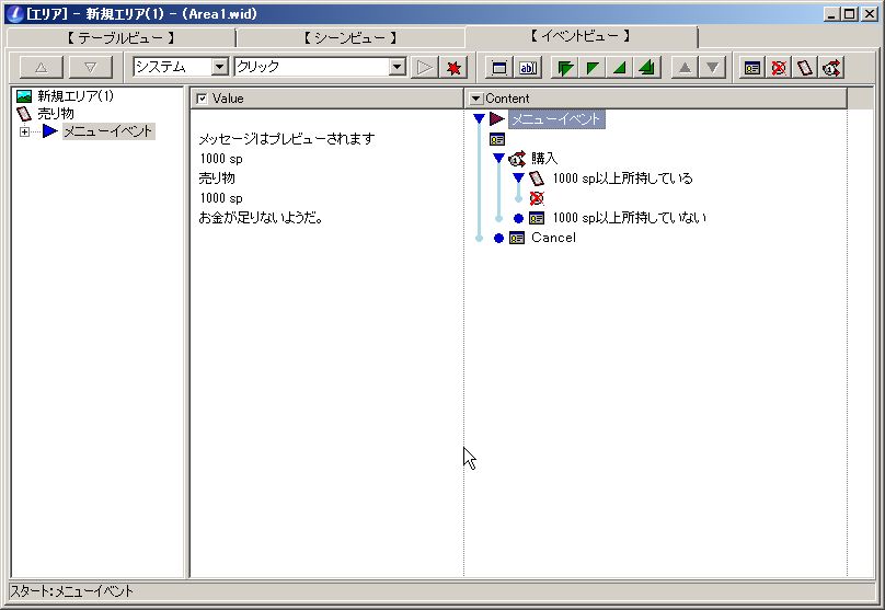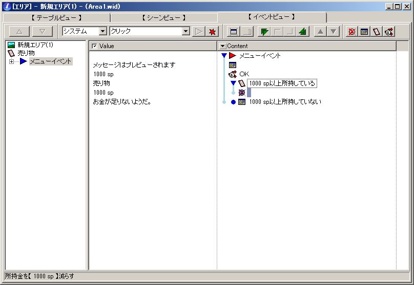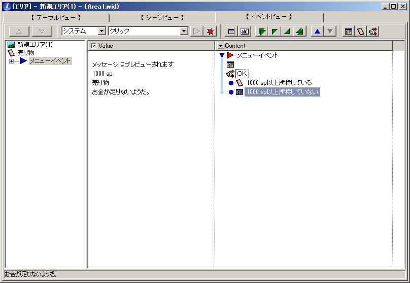 こんな感じで、一定金額以上を所持しているときには入手イベントを、所持していないときにはエラーメッセージを入れることが出来ます。